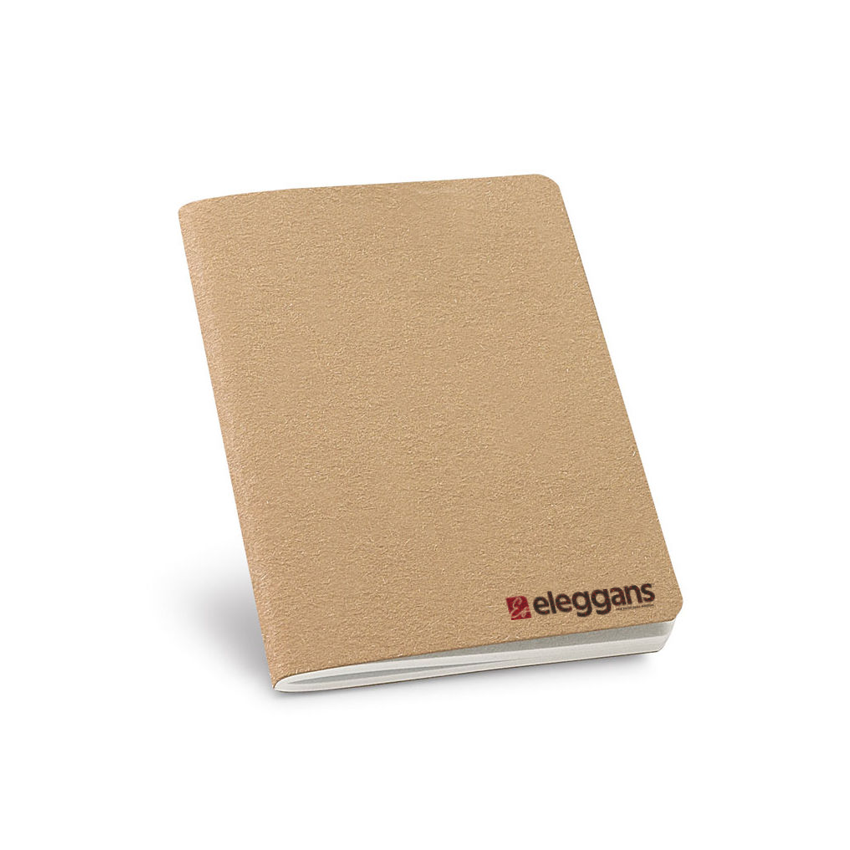 Libreta de bolsillo ecológica de cartón reciclado. Interior con hojas lisas fabricadas en papel reciclado y tapas en cartón reciclado.